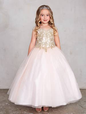 7024 - Stunning Off Shoulder Dress with Gold Lace Applique