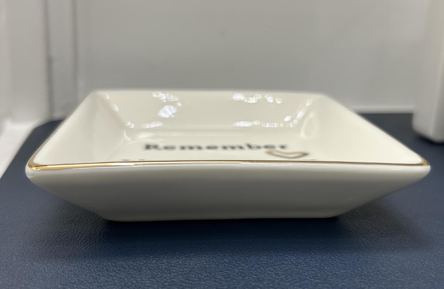 Celebrate the bond between you and your mother with this elegant jewelry dish. Crafted with a gleaming gold-trimmed edge and heartfelt words, “Remember, I love you mom”, it’s the perfect keepsake for the mother of the bride/groom. Ideal for holding rings, earrings, or small treasures, this dish is a daily reminder of love on your most special day.