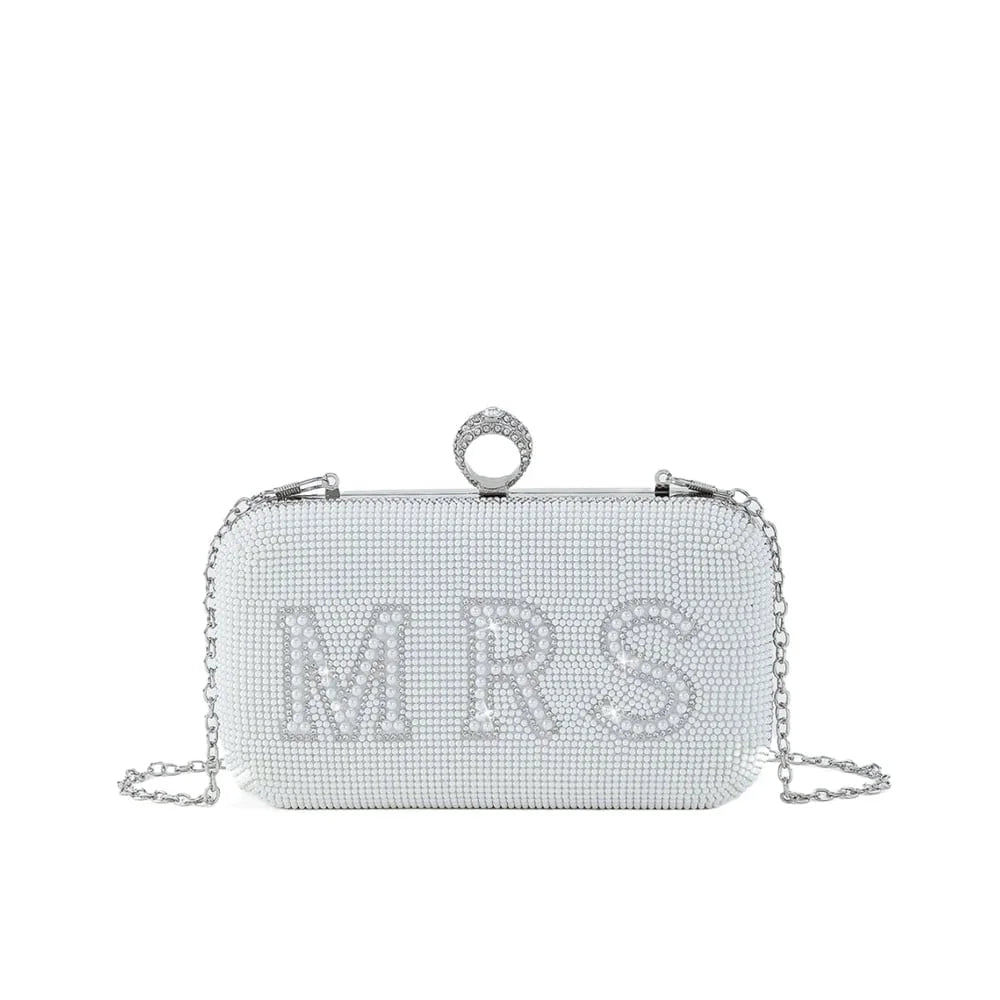 Step into your newlywed era with sparkle and sophistication. The Glamo Society MRS. Rhinestone Clutch is designed for the modern bride who wants her style to shine long after the vows. Featuring dazzling crystals and pearl-detailed MRS. lettering, this glamorous clutch is the perfect accessory for your wedding reception, honeymoon dinners, or post-wedding celebrations.