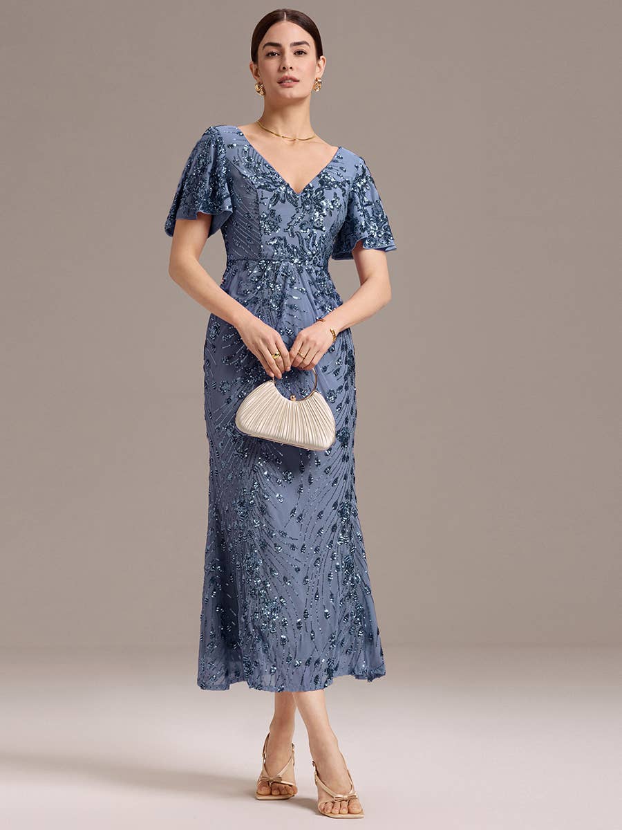 Make a stunning entrance in our Strapless Deep V-Neck Fishtail Paillette Midi Evening Dress! This captivating gown features a daring deep V-neckline that enhances your d¨¦colletage, while the strapless design showcases your shoulders elegantly. The exquisite paillette embellishments shimmer with every movement, adding a touch of glamour to your look. The fishtail silhouette hugs your curves perfectly, flaring out dramatically at the hem for a show-stopping finish. Ideal for cocktail parties, weddings, or any formal occasion, this dress is your go-to for turning heads and stealing the spotlight!